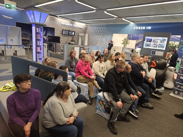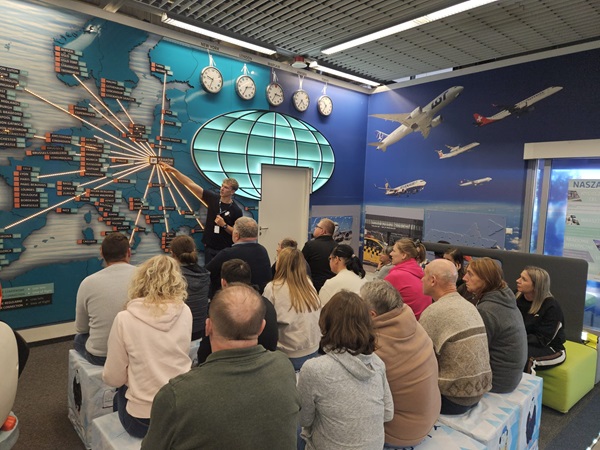 Następnie udaliśmy się do Centrum Edukacji Lotniczej. Tam dowiedzieliśmy się, jak funkcjonuje lotnisko, kto dba o bezpieczeństwo podróżnych i jak wygląda praca w powietrzu i na ziemi.