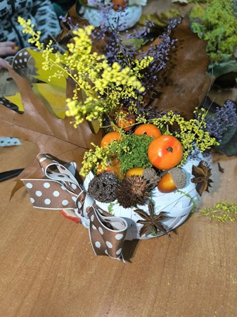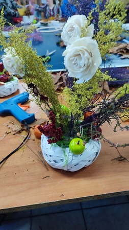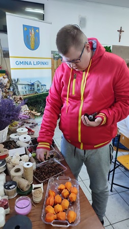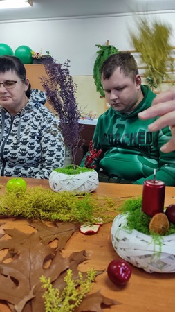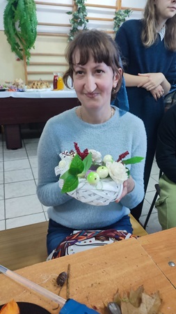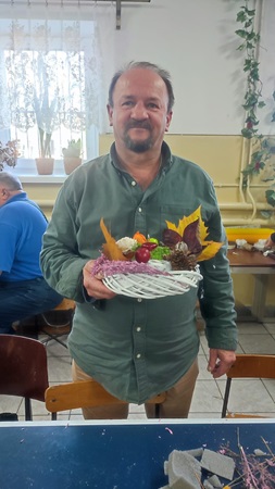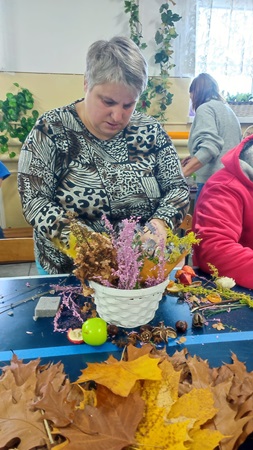 Uczestnicy Warsztatu wzięli udział w zajęciach o tematyce jesiennej, zorganizowanych w Gminnym Centrum Kultury w Lipinkach, podczas których wykonywali piękne stroiki z darów natury – liści, szyszek, kasztanów i żołędzi.