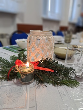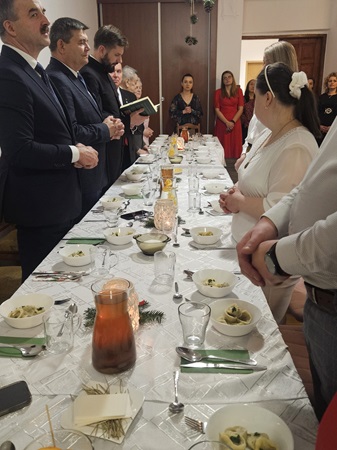 Wspólne świętowanie dopełniła tradycyjna kolacja wigilijna. Na stołach pojawiły się: barszcz z uszkami, ziemniaki, ryba, kapusta z grochem, pierogi ze śliwkami, kompot z suszu oraz domowe, świąteczne ciasta