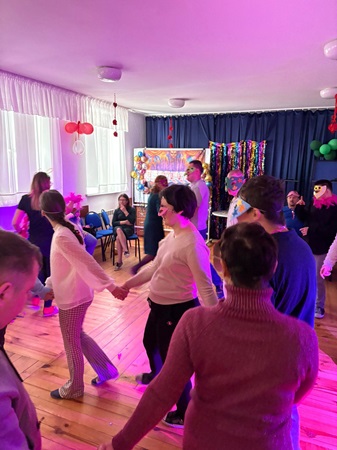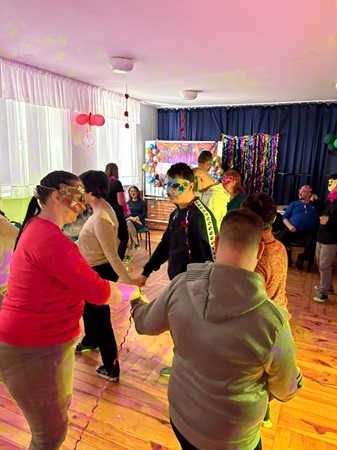 Jak przystało na Karnawał były tańce, śmiech i mnóstwo dobrej energii! Nie zabrakło wspólnego pociągu, „chusteczki haftowanej” oraz emocjonującej zabawy w krzesła. Sala wypełniła się muzyką, a na twarzach uczestników gościły szerokie uśmiechy.